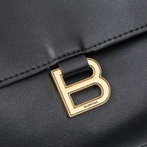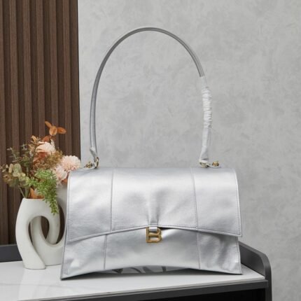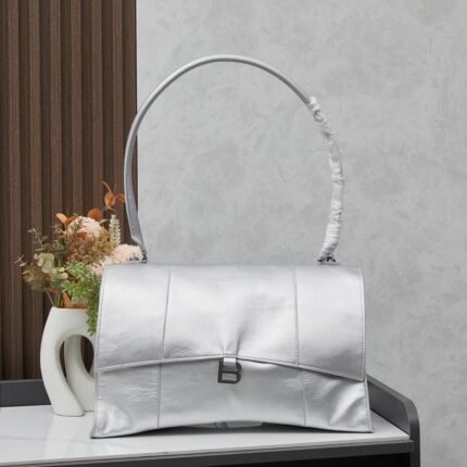 Balenciaga latest Hourglass tote bag boasts a strikingly sculptural silhouette that captivates at first glance. Its design masterfully blends fluid curves with sharp angles