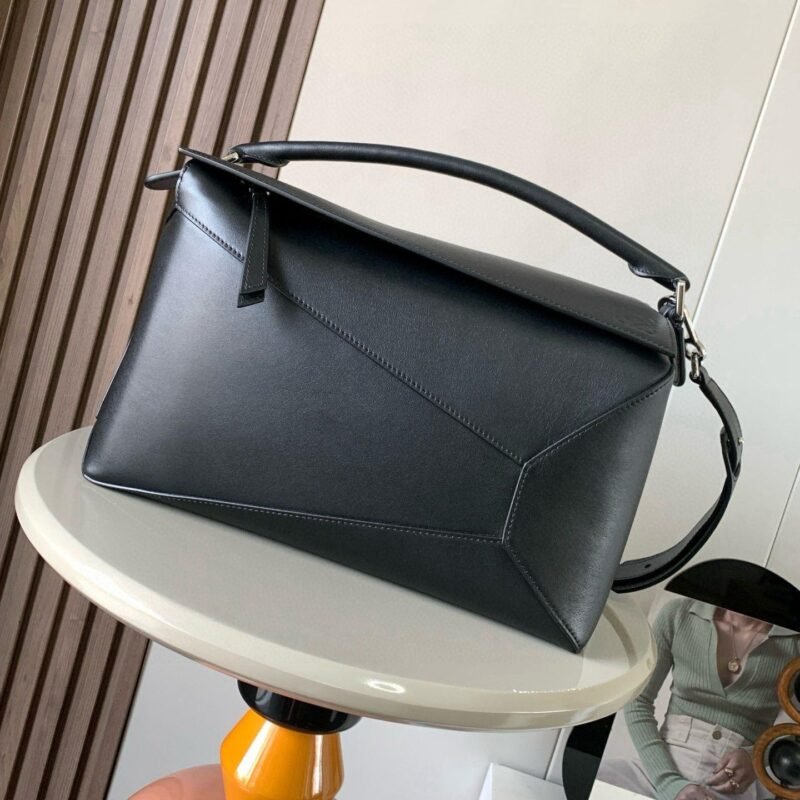New Edition Geometric Bag 29CMPuzzle Handbag ~ Genuine imported cowhide leather. Loewe's bestselling Geometric Puzzle bag. This handbag marks Creative Director Jonathan Anderson's debut tote for Loewe. Its rectangular form and precise cutting techniques define the Puzzle. Its distinctive geometric lines and minimalist design blend chic sophistication with edgy coolness. Crafted from authentic calf leather, it maintains its shape perfectly with an unparalleled soft feel that instantly elevates your style. The structured silhouette conceals remarkable capacity, making it an endlessly coveted must-have!