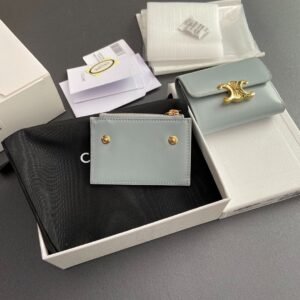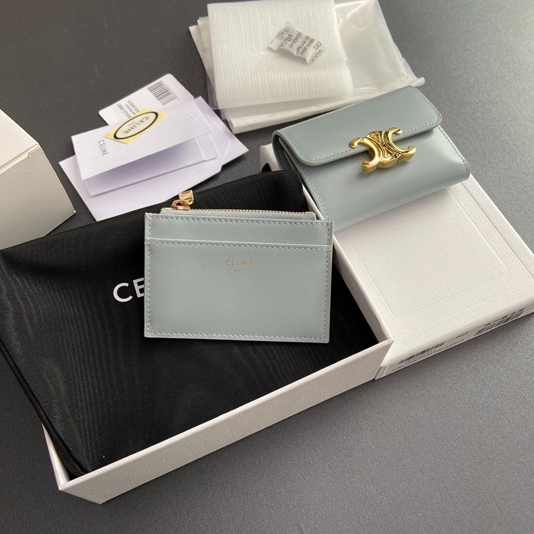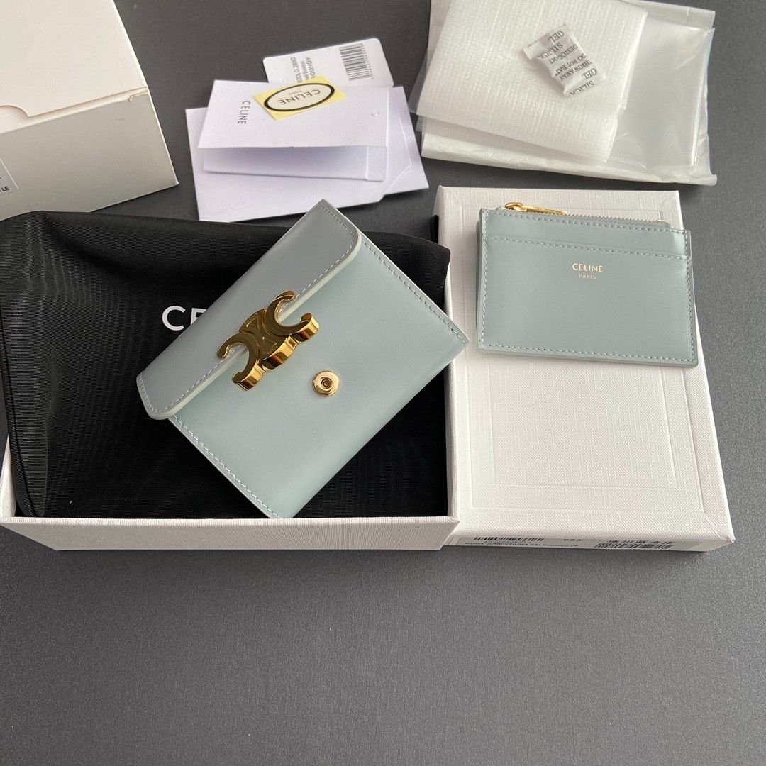 Celine TRIOMPHE Genuine Leather Glossy Short Wallet