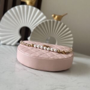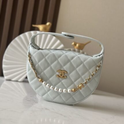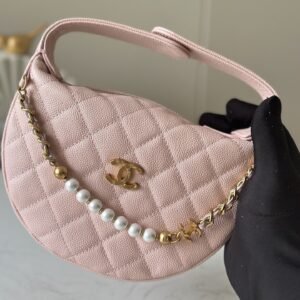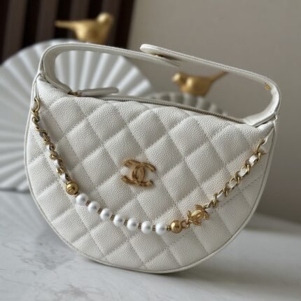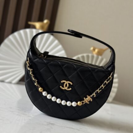 Chanel Hula Hoop Pearl Chain Bag! Crescent-shaped body with a retro hula hoop silhouette.