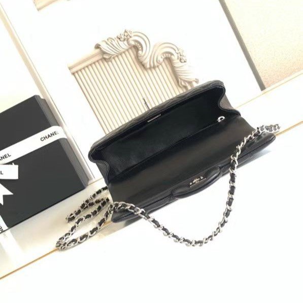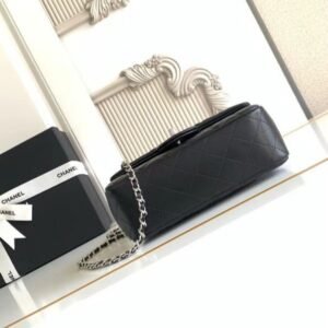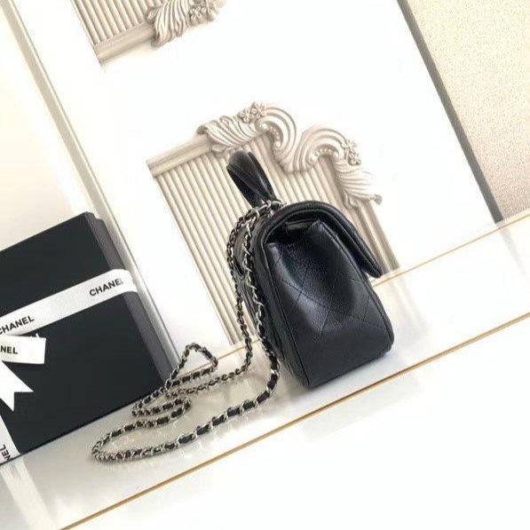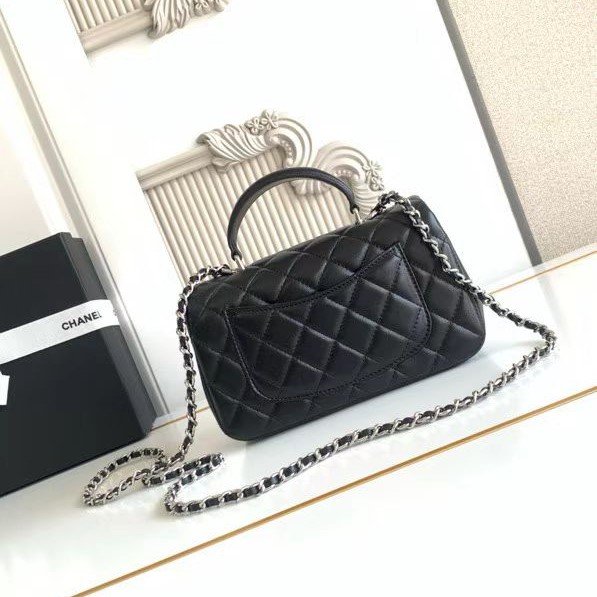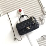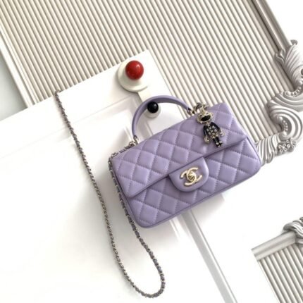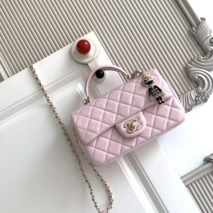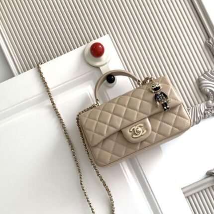 Mini CF Handle Tote Bag, AS2431 Classic Diamond-Quilted Flap Bag with Human Head Charm Features an elegant classic chain strap for carrying.