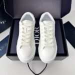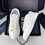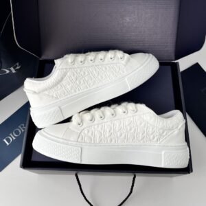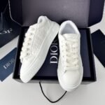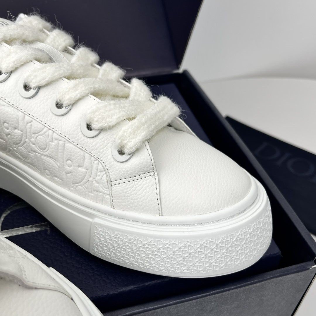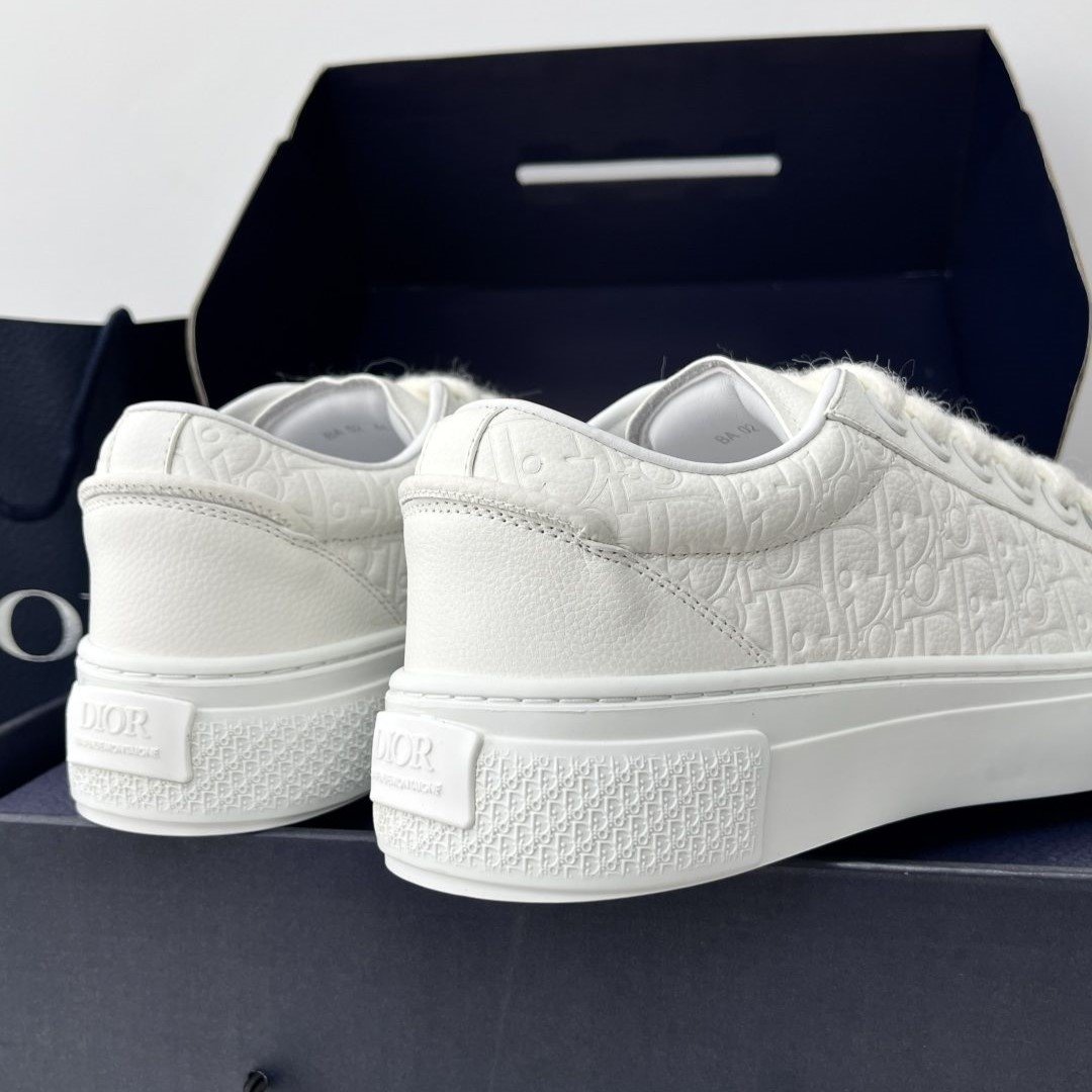 The Dior B33 Sneakers are meticulously crafted from gray calf leather, featuring tonal CD Diamond patterned canvas inserts along the sides.
