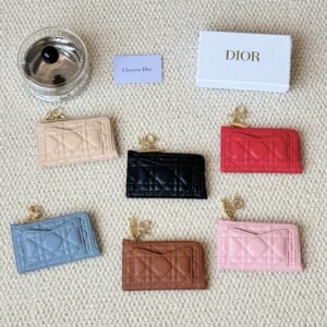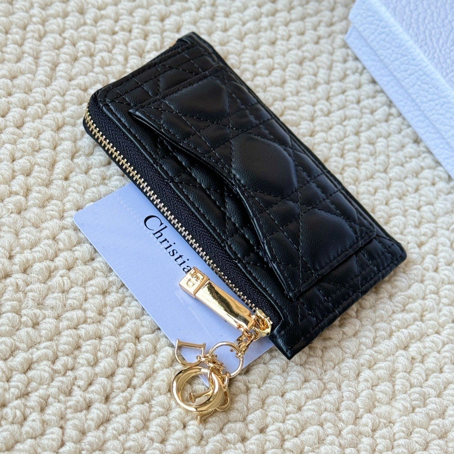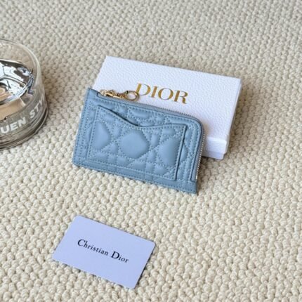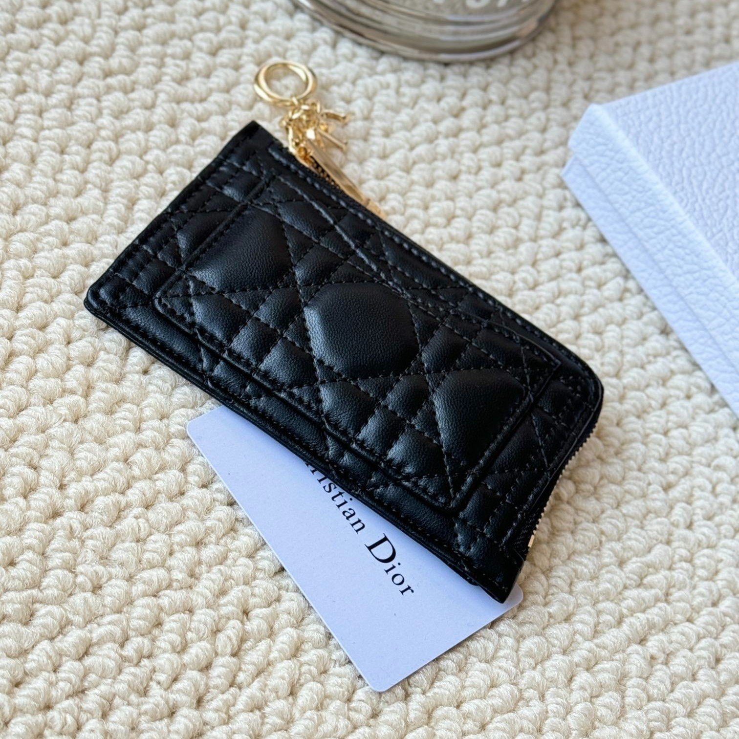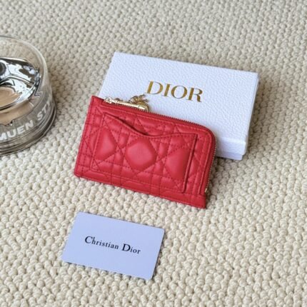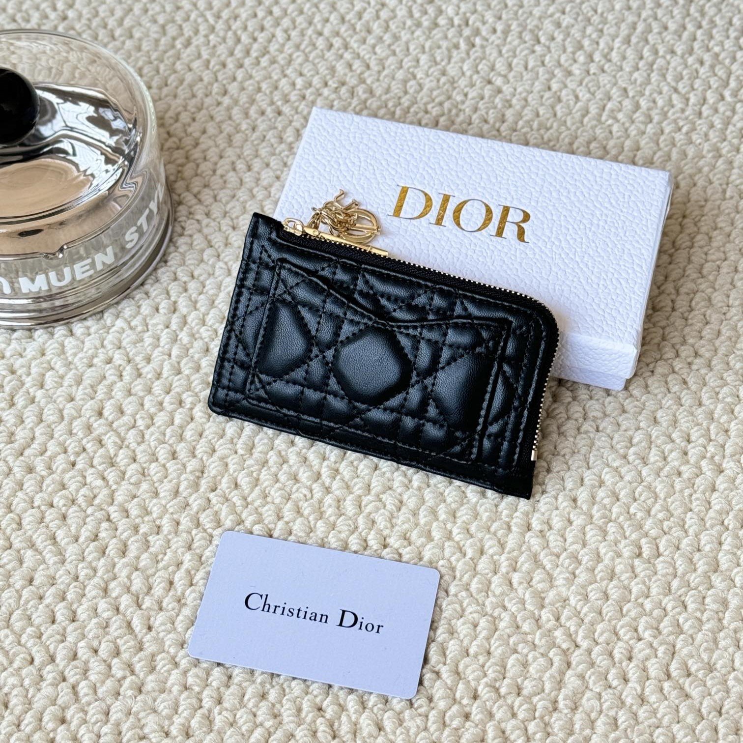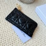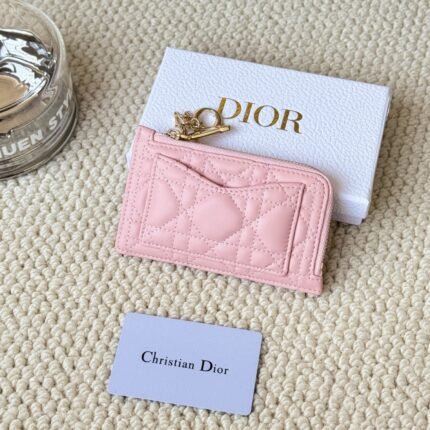 Lady Dior card holder, L-shaped opening, seven-character zipper pull