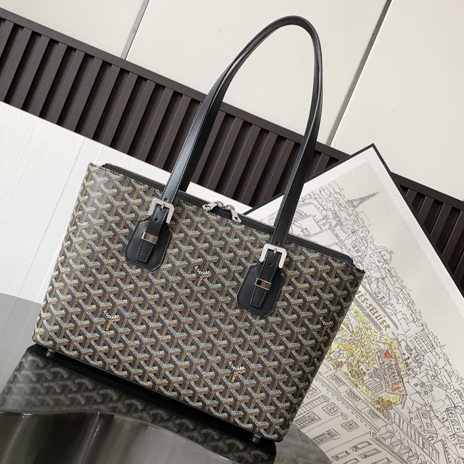 Goyard Morvan, a sleek and elegant vintage-inspired briefcase featuring a clean silhouette and dual zipper closure.