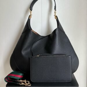 Gucci Aphrodite features soft-grain leather, showcasing a fluid silhouette with a pronounced drape.