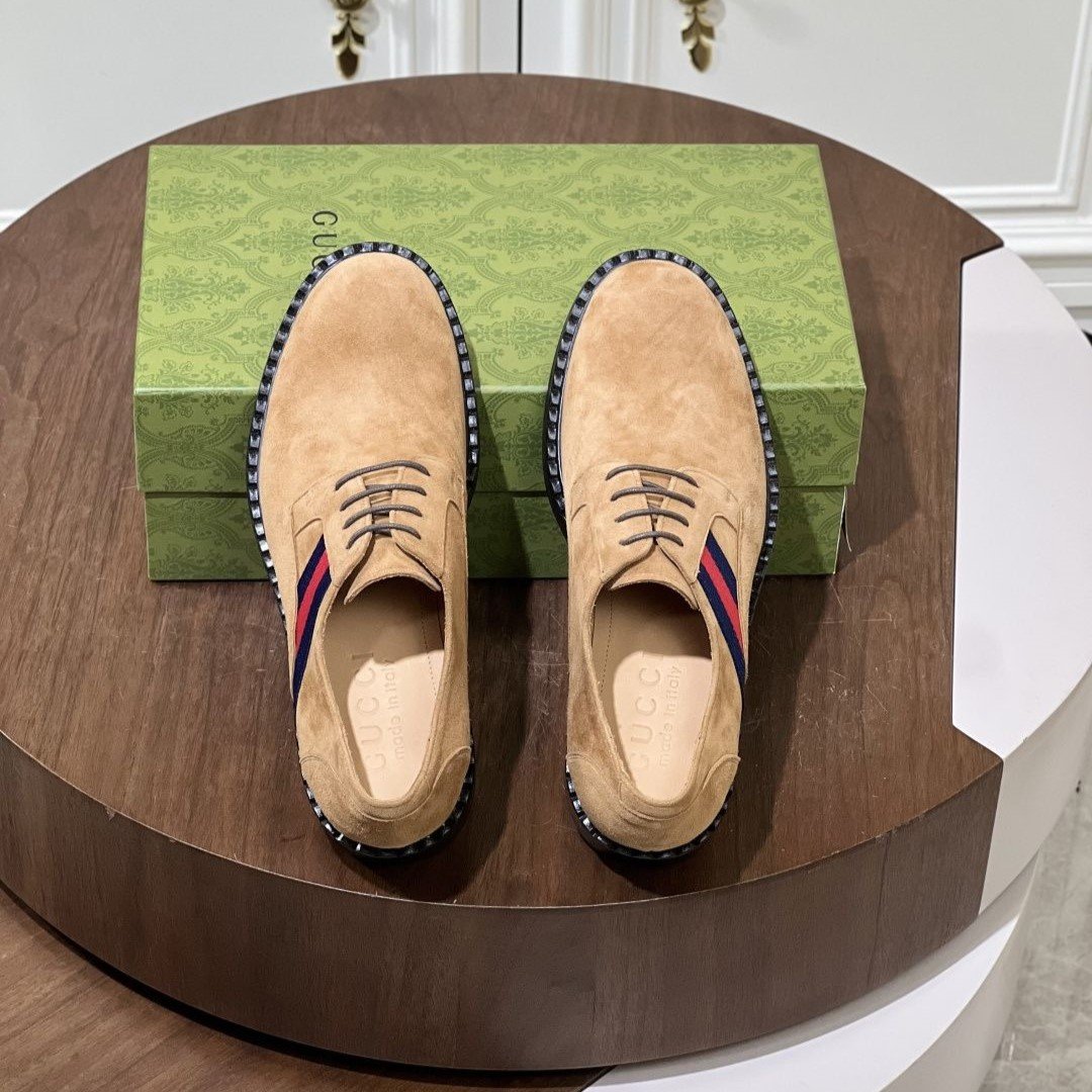 The Gucci Creeper features the iconic double G pattern on its sole, with textured treads that enhance traction for more stable walking.