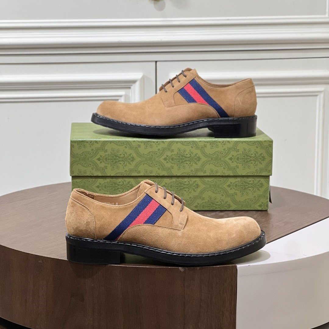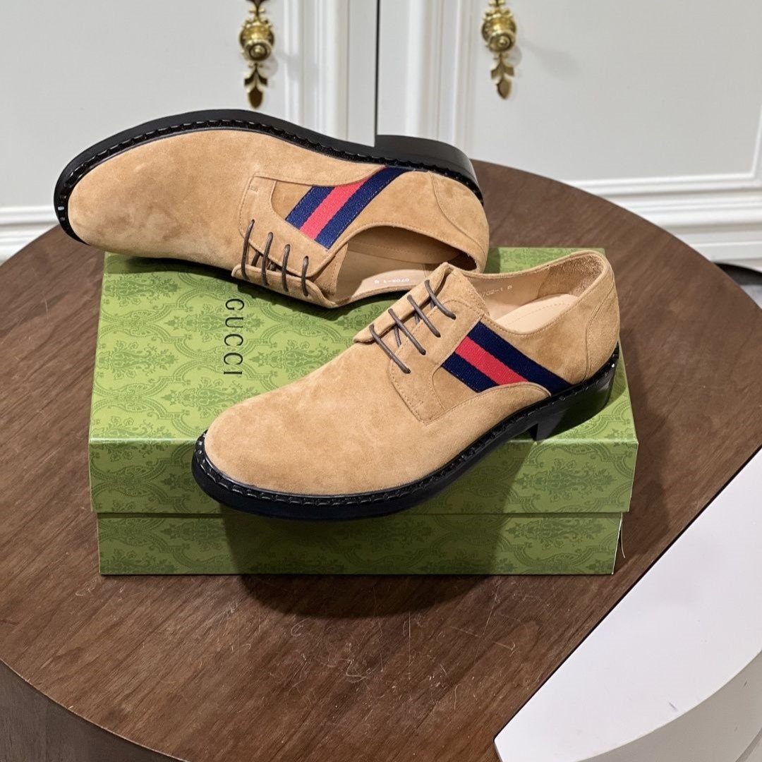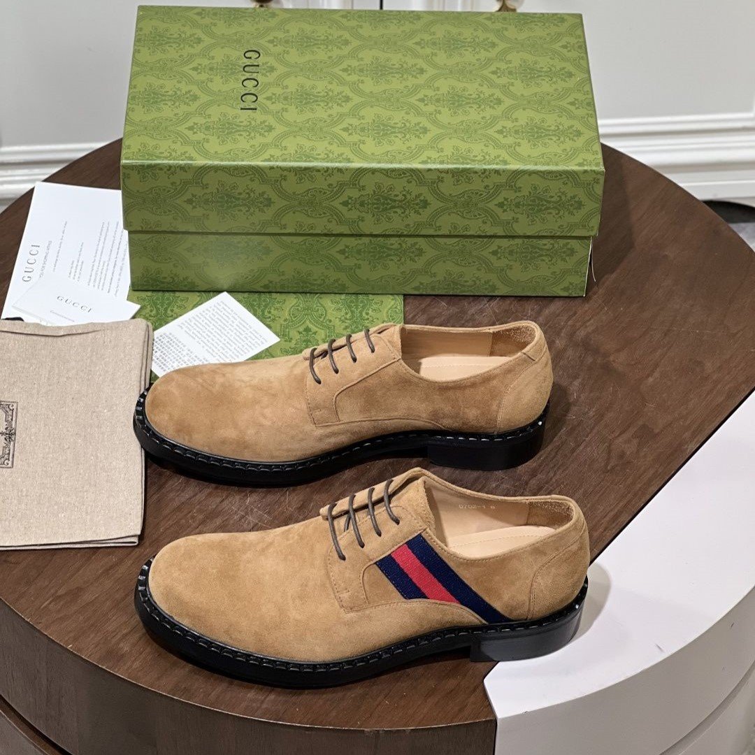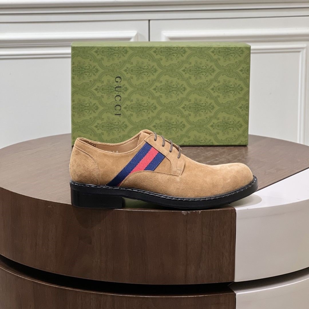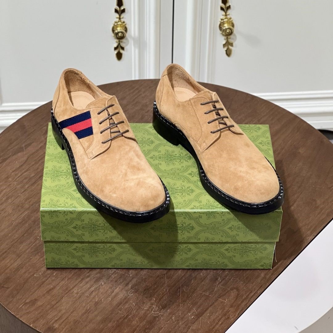 This shoe features the brand's signature interlocking GG pattern embossed leather.