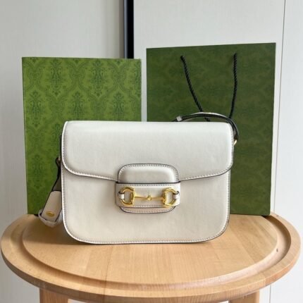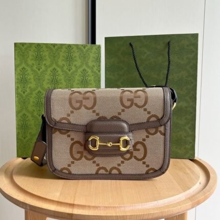 The Gucci Horsebit 1955 Collection mini shoulder bag is crafted from a new canvas featuring a distinctive embossed pattern that lends it a soft, refined texture.