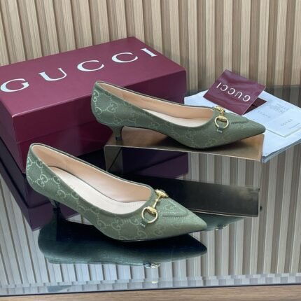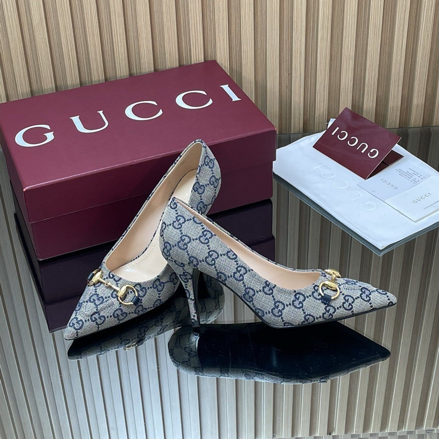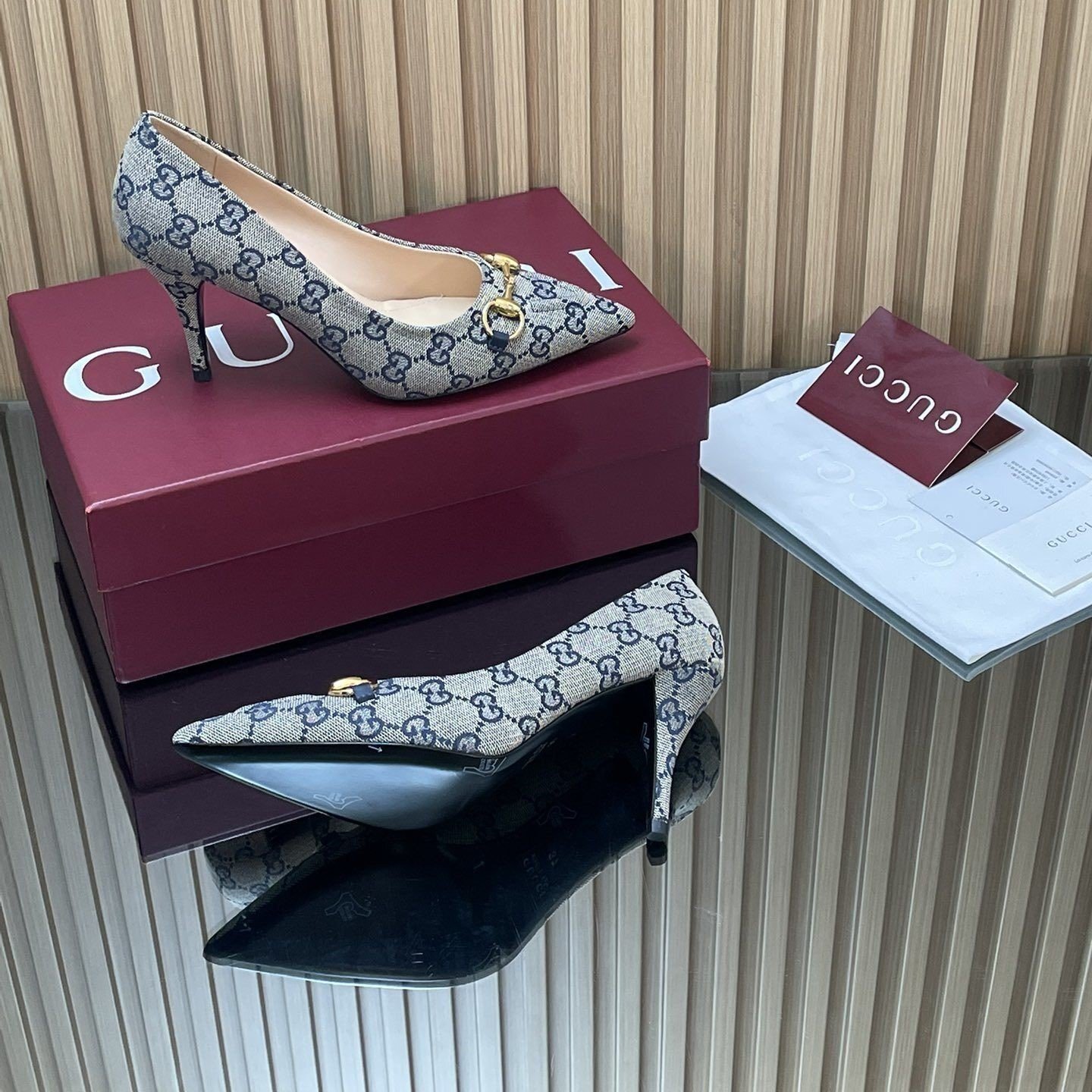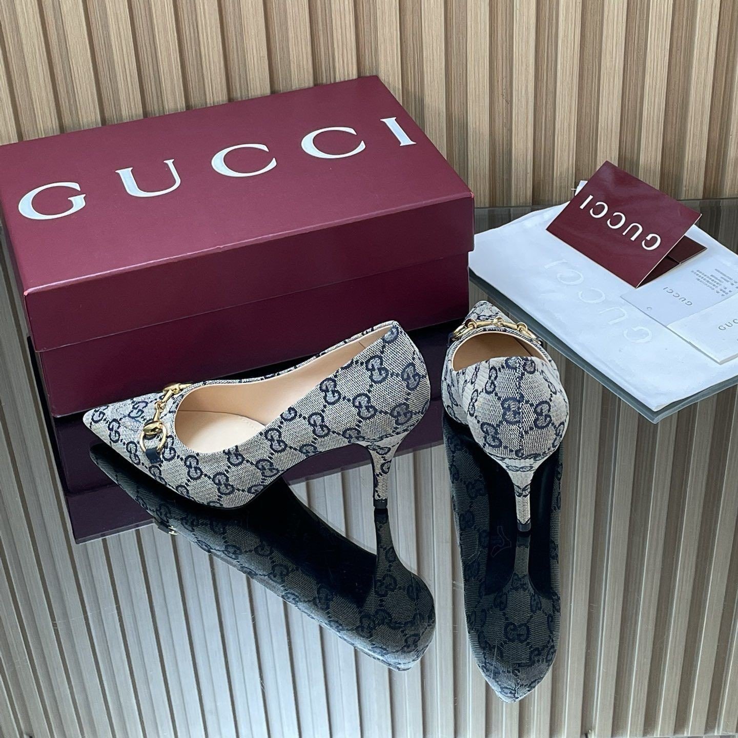 Gucci Horsebit Collection Horsebit-embellished cone-heel pumps Pointed-toe stiletto heels Monogram G-canvas low-heel shoes