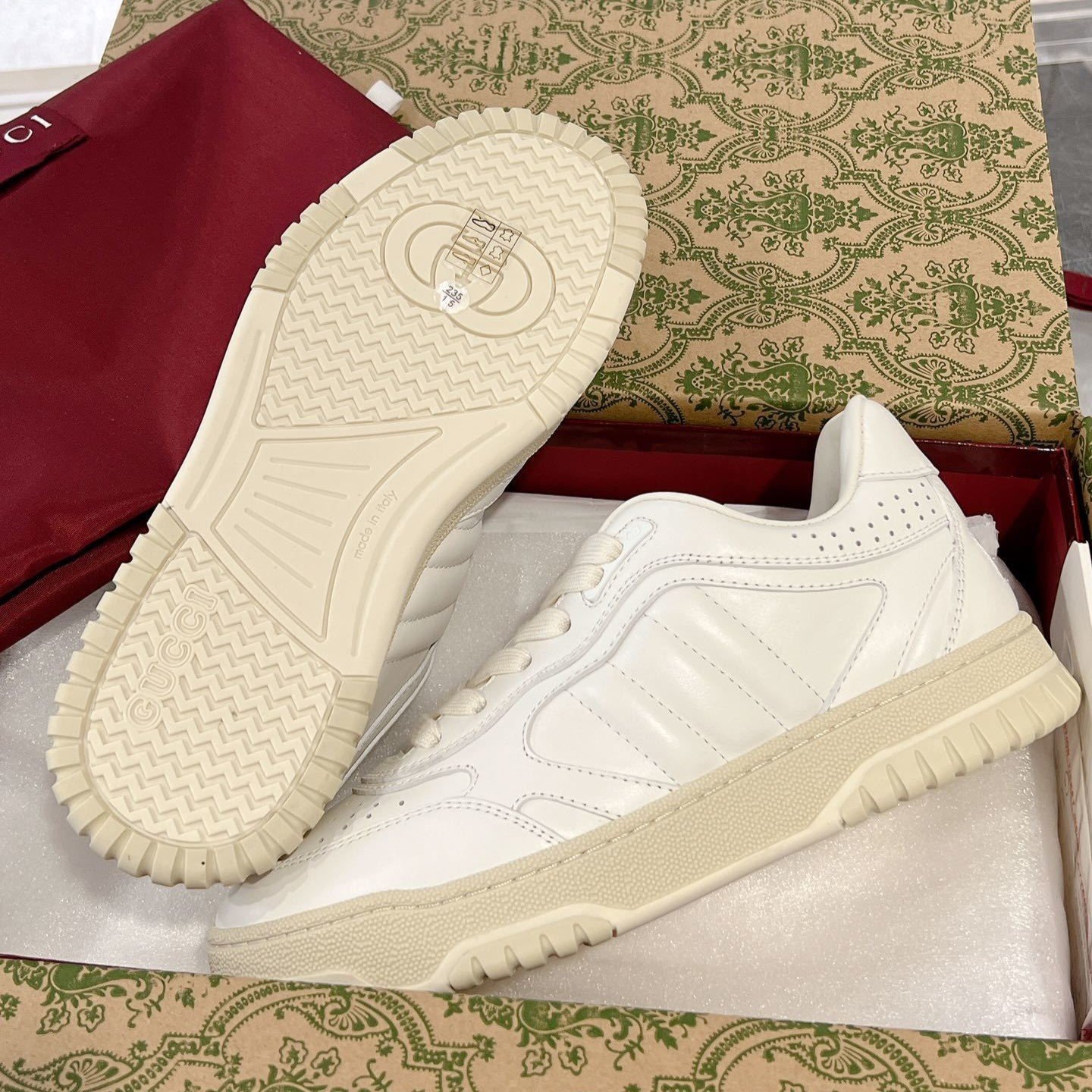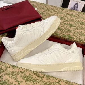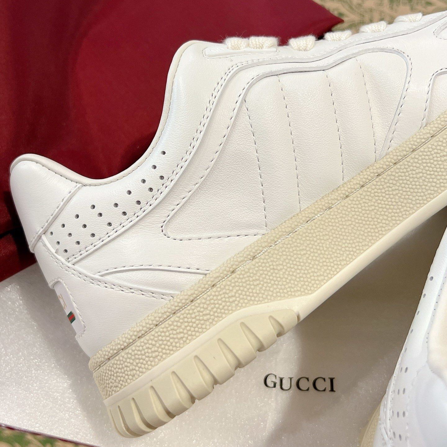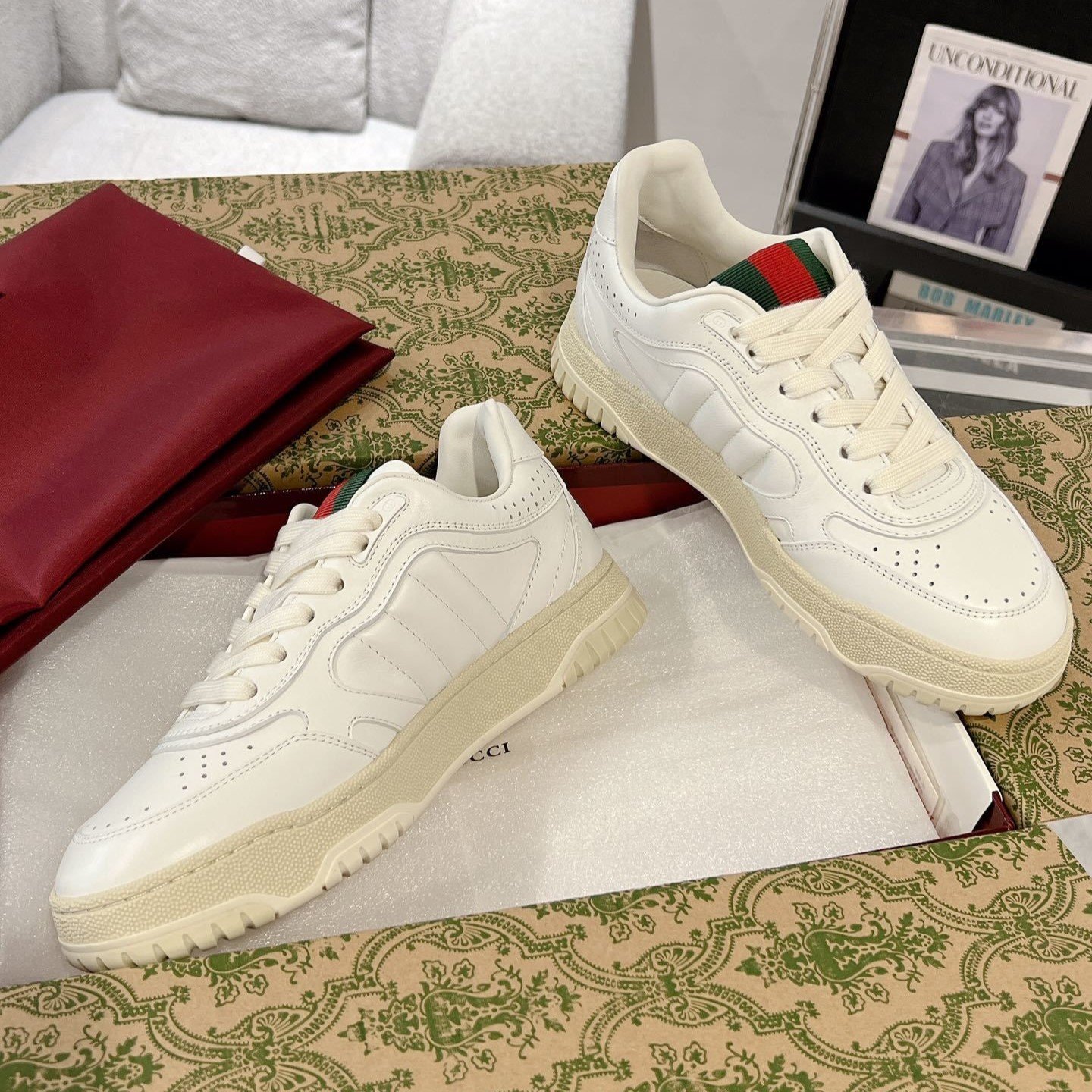 The Gucci Re-Web high-top sneakers feature a basketball-inspired silhouette, cleverly incorporating perforated panels and distressed detailing.