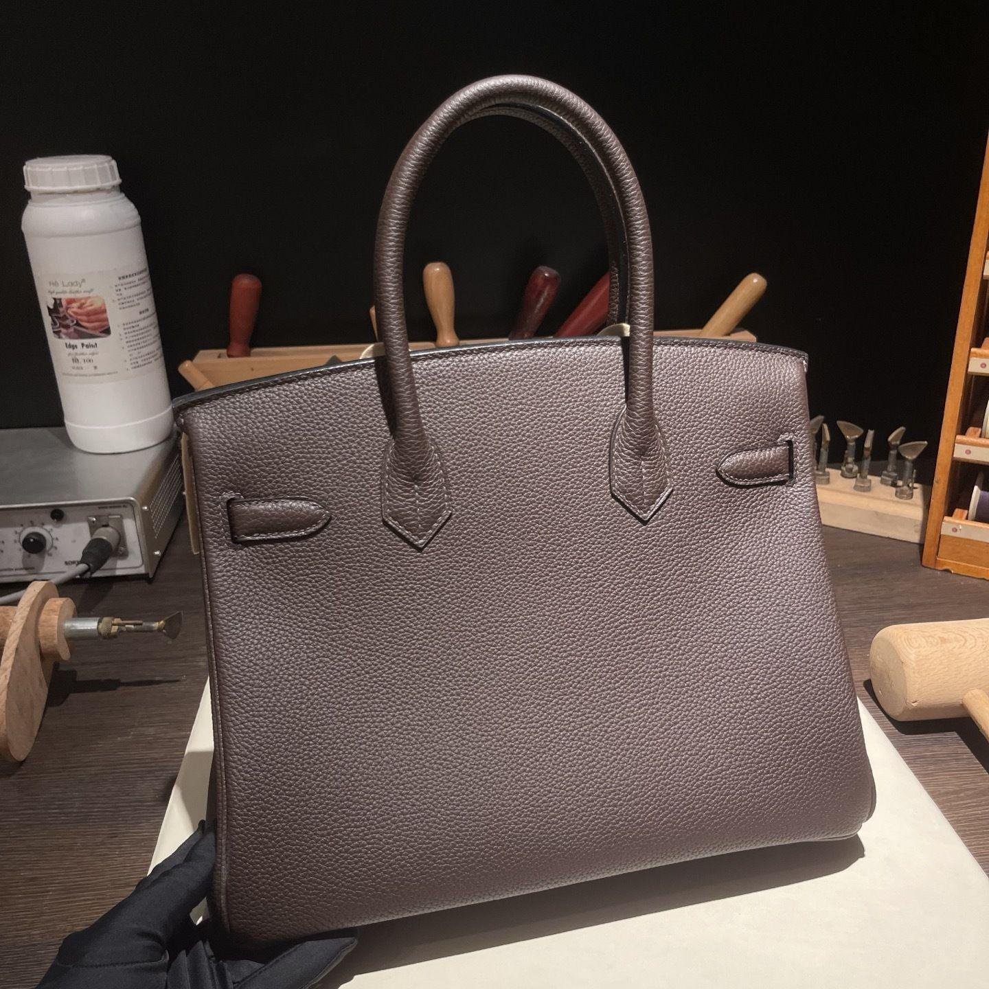 Birkin Platinum 30cm, genuine imported Togo leather,