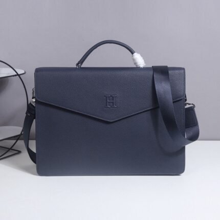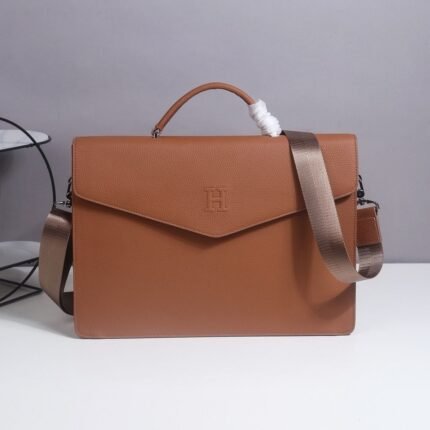 Hermès refined briefcase, adorned with signature motifs and complemented by the brand’s emblem.