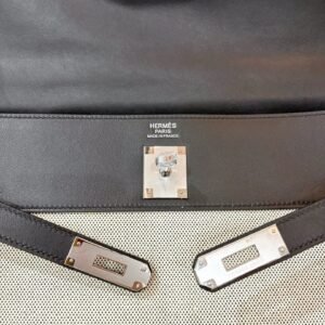 Kelly imported Swift leather patchwork with black and silver buckles.