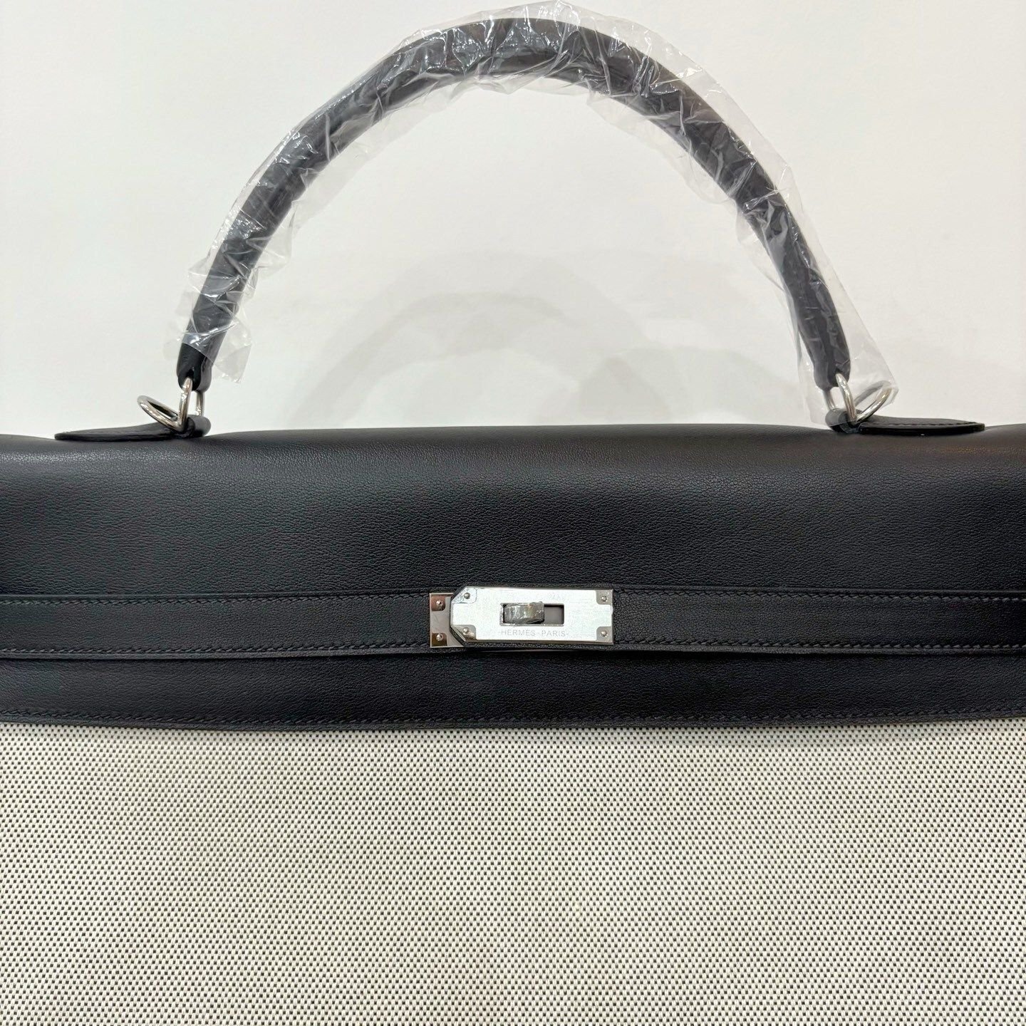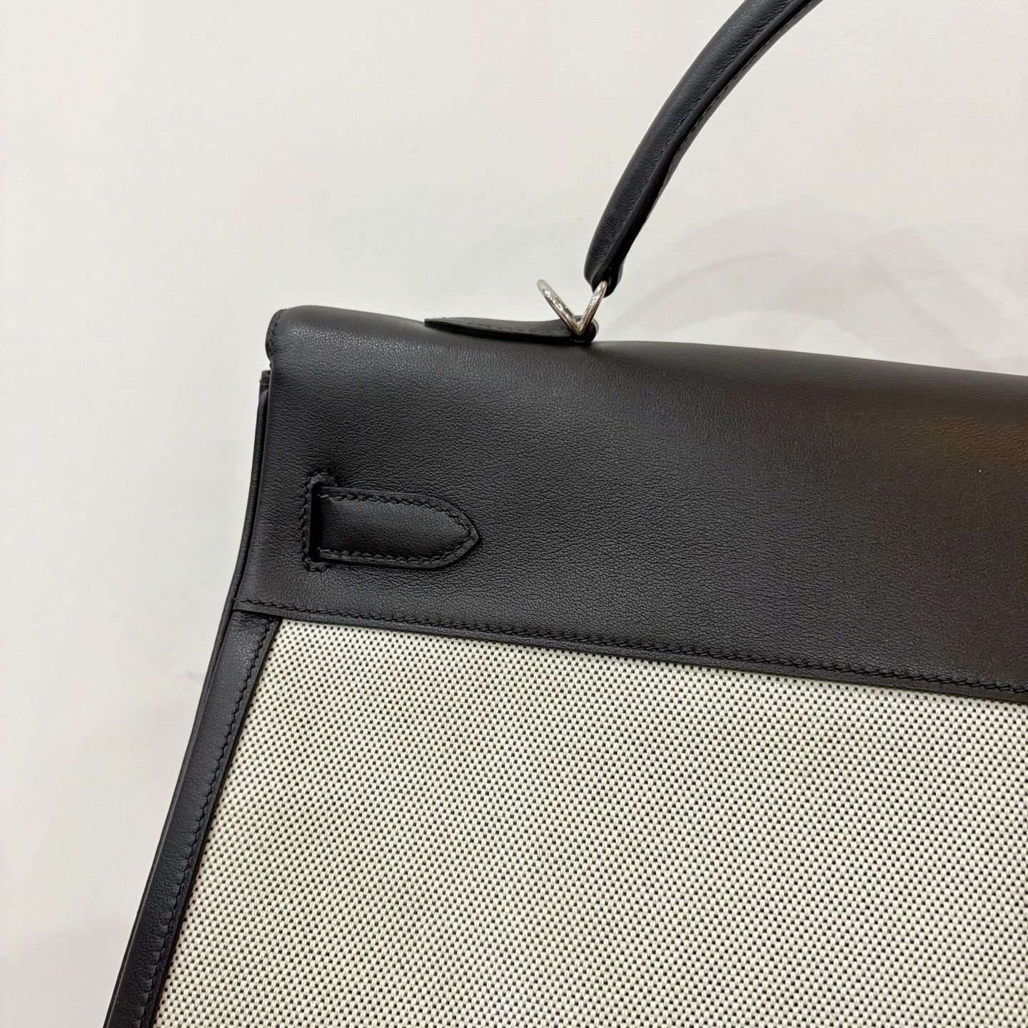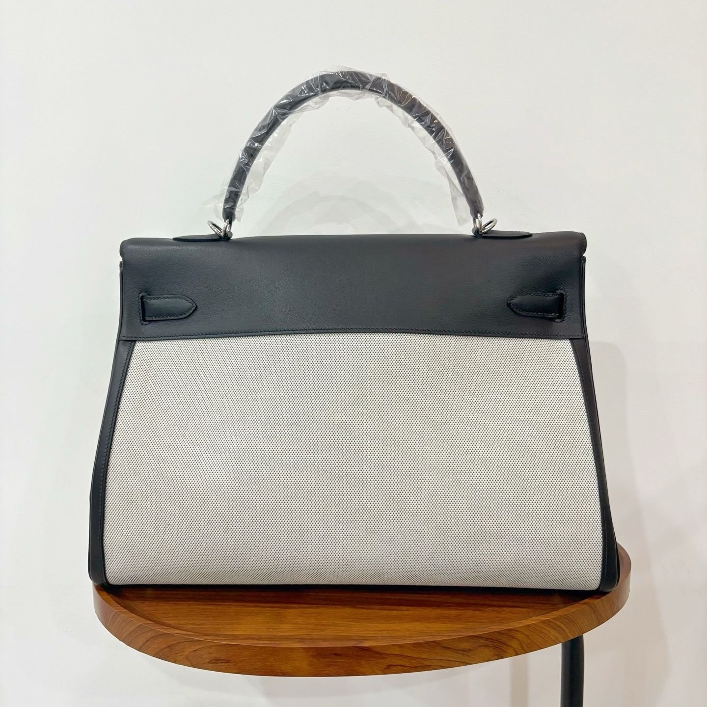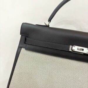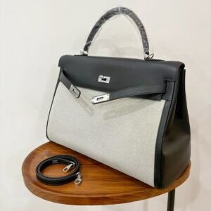 Kelly imported Swift leather patchwork with black and silver buckles.