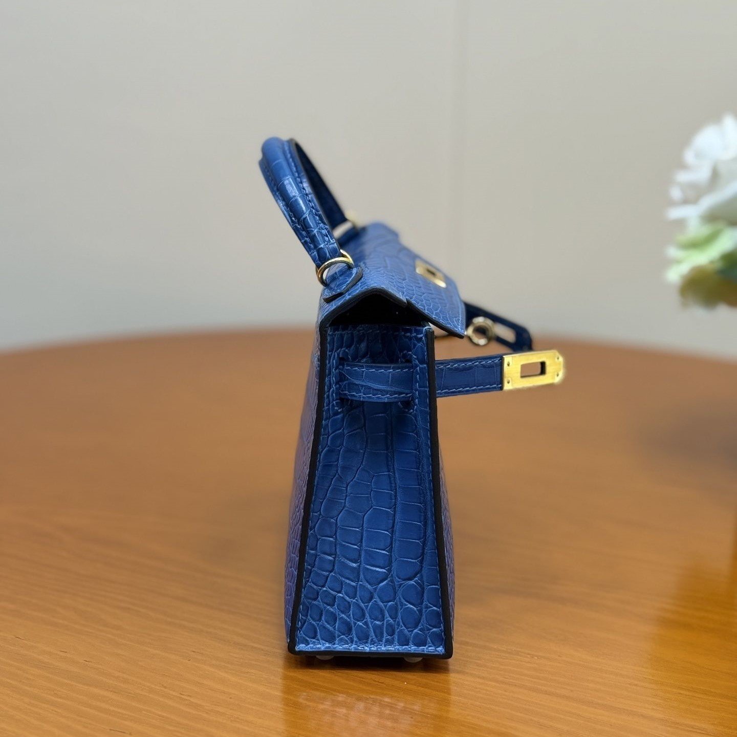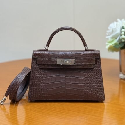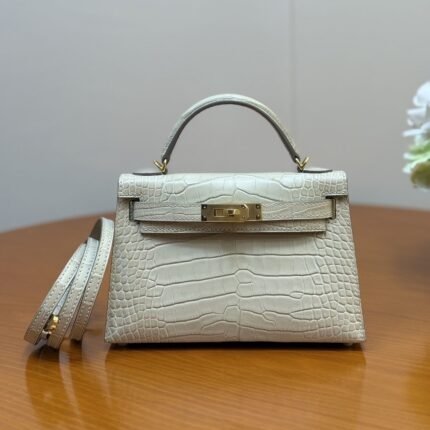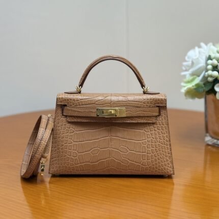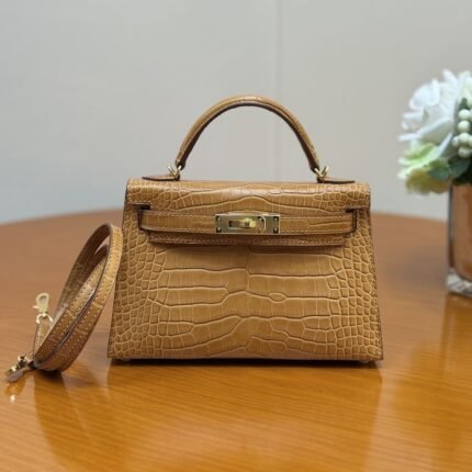 Kelly II Compact Kelly Bag, dual-purpose handbag and shoulder bag for women, structured bag with crocodile pattern.