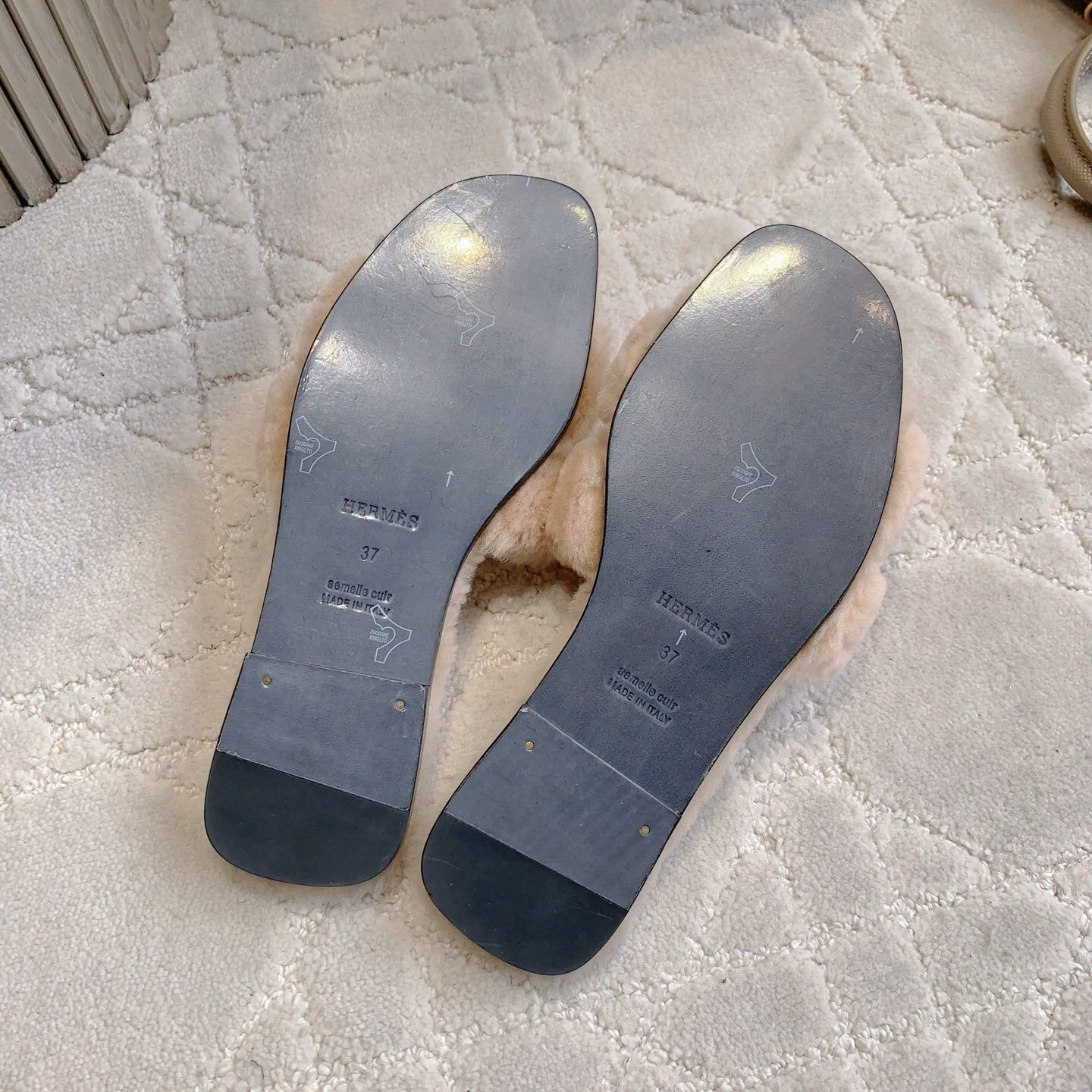 Hermès Oran sheepskin sandals Teddy flat sheepskin slippers in H style for autumn/winter Versatile and featuring warm soles, they are very popular with women.