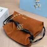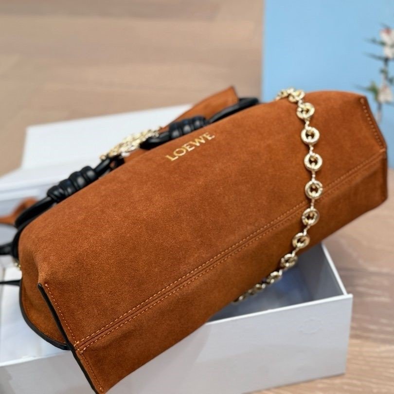 LOEWE Flamenco features pleated detailing with signature rope knots on the sides and other key elements.