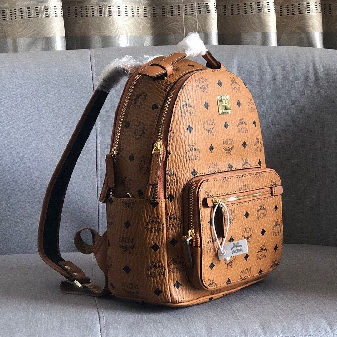 MCM Stark Visetos Backpack This backpack features a rounded silhouette.