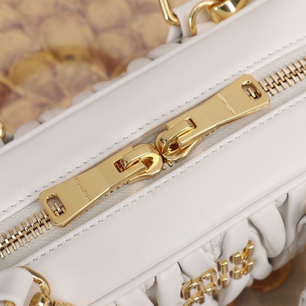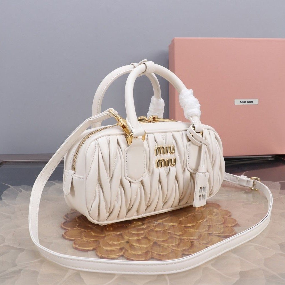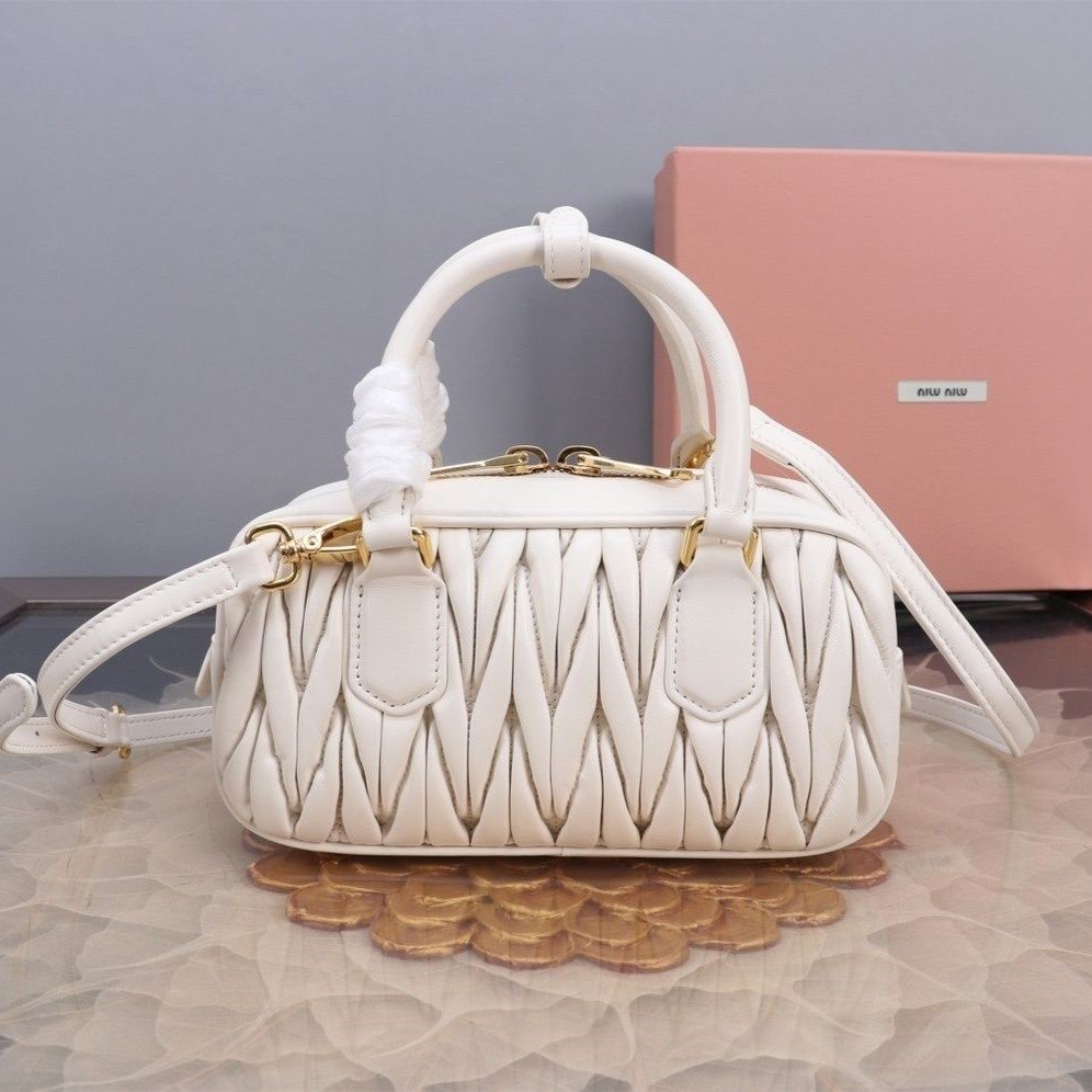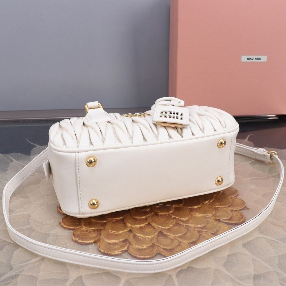 Miu Miu Arcadie, crafted from premium imported lambskin, features the brand’s signature quilted pattern, creating a refined, structured silhouette.