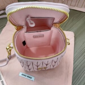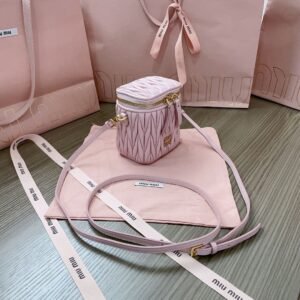 Miu Miu Matelassé Ultra-Mini Cosmetic Pouch, crafted from premium imported lambskin with exquisite Matelassé quilting.