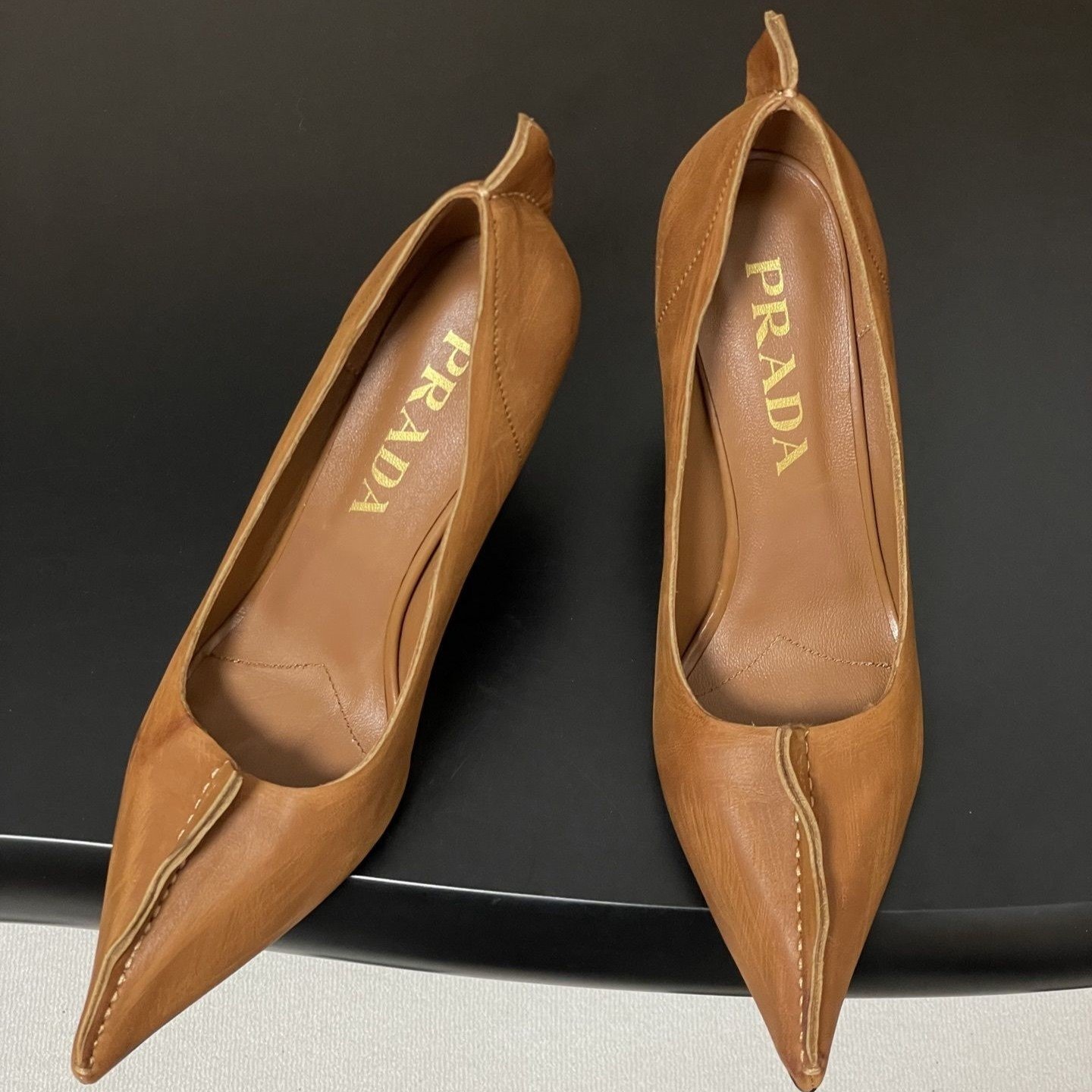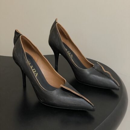 Prada Antiqued Leather Pumps Retro-inspired structured high heels