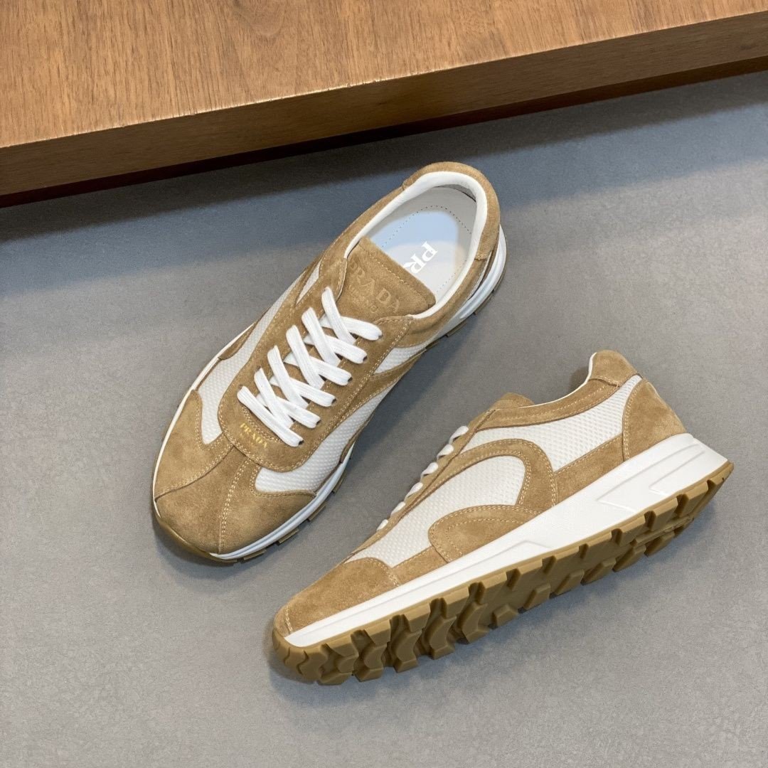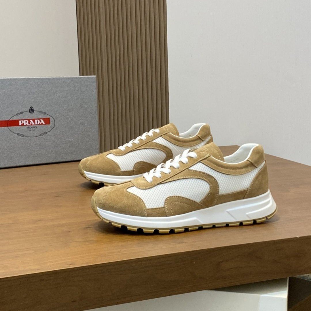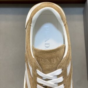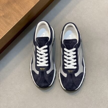 The Prada Downtown Sneaker features exquisite stitching that creates a distinctive geometric texture.
