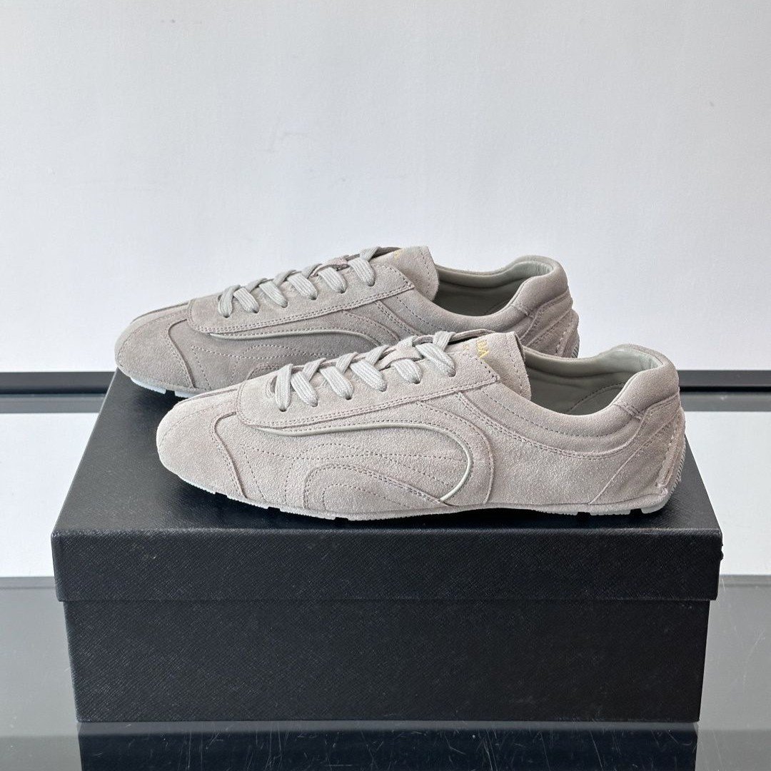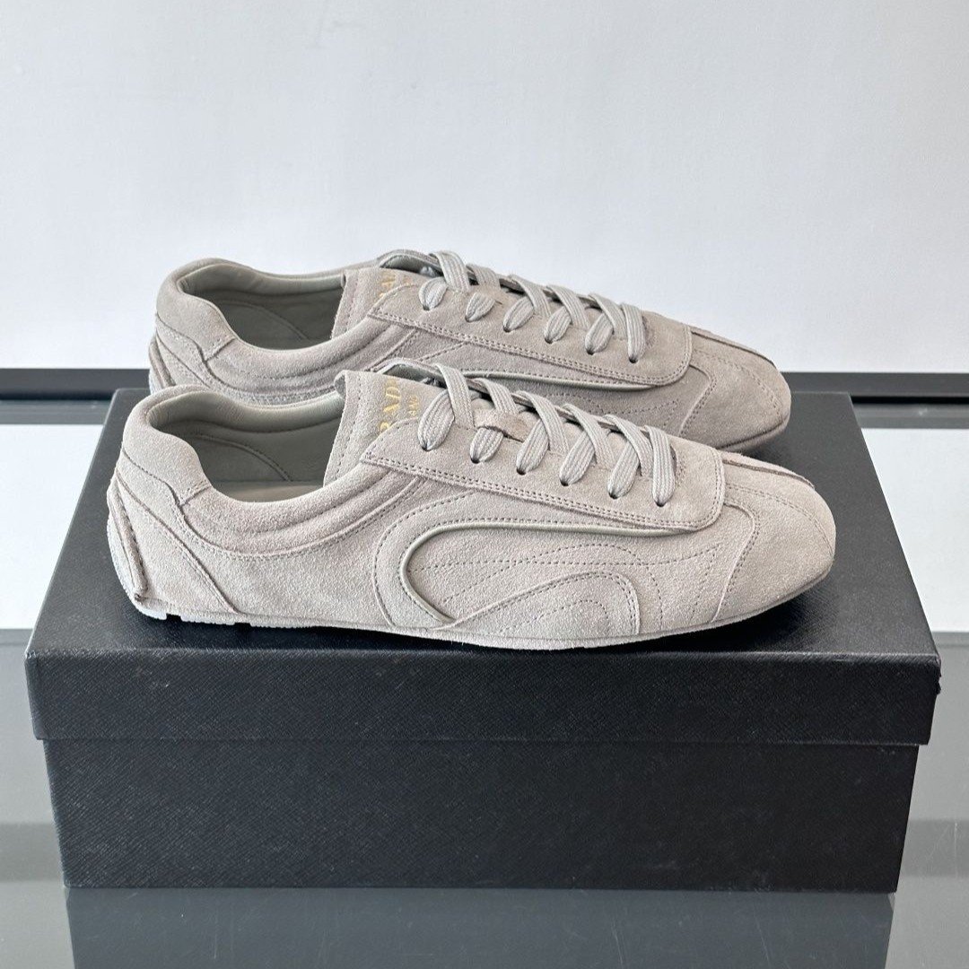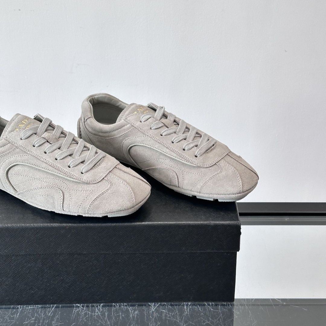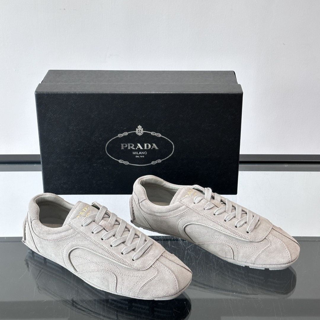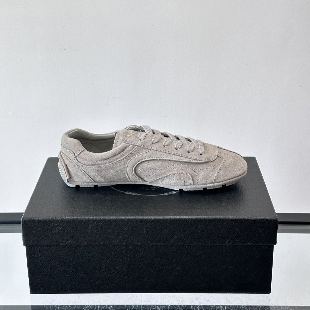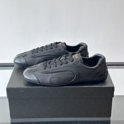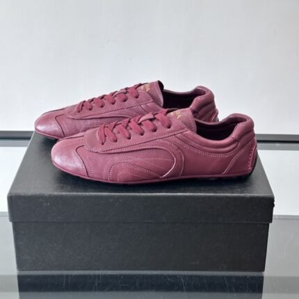 The Prada Montecarlo loafer draws inspiration from racing shoes, featuring an upper crafted from supple lambskin.