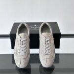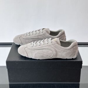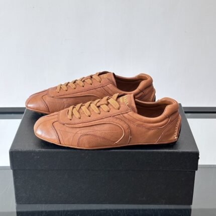 Featuring a classic T-shaped toe cap and topstitching, it exudes a retro yet sporty aesthetic.