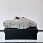 La Balenciaga Runner met en valeur l'esthétique caractéristique des sneakers du créateur Demna à travers des détails tels que le caoutchouc débordant, les finitions vieillies et les coutures apparentes.