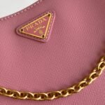 Upgraded version of the best-selling baokuanqnylon Hobo tote bag, featuring the original cross-grain pattern. Includes a detachable P-brand Re-Edition 2005 Saffiano leather nameplate with keyring, removable and adjustable logo fabric shoulder strap, detachable zippered leather pouch, and detachable metal chain shoulder strap. Top zipper closure. nylon lining, enameled triangular metal logo.