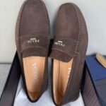 Inner lining crafted from vegetable-tanned calfskin, featuring a standard logo-embossed cowhide footrest.