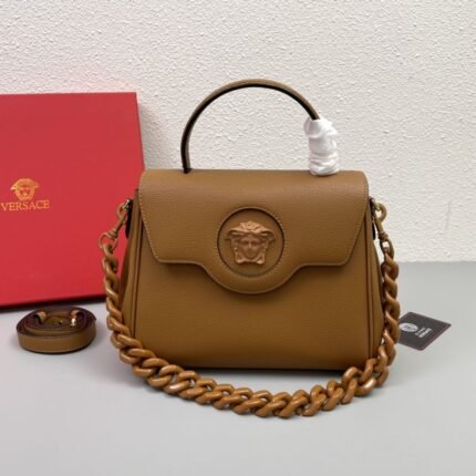 Medium size, featuring a detachable chain strap and an adjustable, removable leather shoulder strap. Carry it by hand, over the shoulder, or crossbody—the perfect everyday companion.